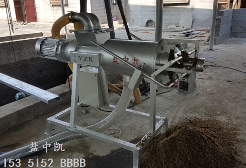 豬糞經專用無堵塞切割泵將豬糞跟污水一起抽進處理機內,再由不銹鋼擠壓絞龍將豬糞污水逐漸推向機體前方,同時不斷提高前緣的壓力, 迫使物料中的水分在邊壓帶濾的作用下擠出網篩,流出排水管。豬糞處理機工作是連續的, 其物料不斷泵入機體,前緣的壓力不斷增大,當大到一定程度時, 就將卸料口頂開, 擠出出料口,達到擠壓出料的目的。為了掌握出料的速度與含水量, 可以調節主機兩邊配重塊的位置,以達到滿意適當的出料態。