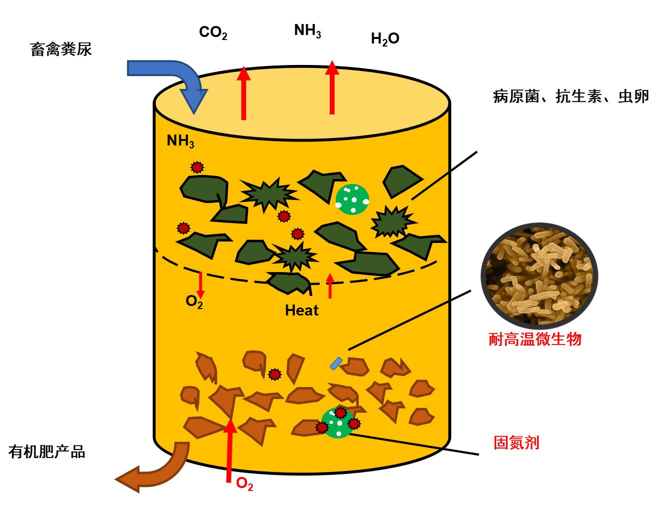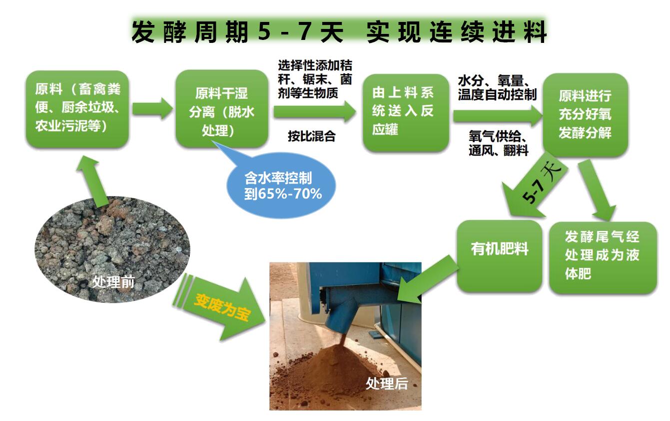 畜禽糞便有機肥發酵罐將儲存和處理過程合二為一,通過調氧控溫、理化固氮和微生物降解,實現畜禽糞尿處理時間縮短70% ,氨氣揮發減少53%,養分含量提高15%-20%,抗生素及抗性基因降解率超過90%。